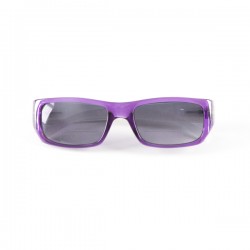 Occhiali da lettura modello Avvolgente (7074) con lenti solari bifocali, plano per lontano e lunetta graduata per vicino disponibile in poteri da +1.00 a +3.50 (intervallo +0.50). Montatura in policarbonato con asta flex. Frontale Viola ed Aste in Bianco (PW). Lenti Asferiche in policarbonato, 100% UV Protection, non idonee per la guida. Astuccio morbido...